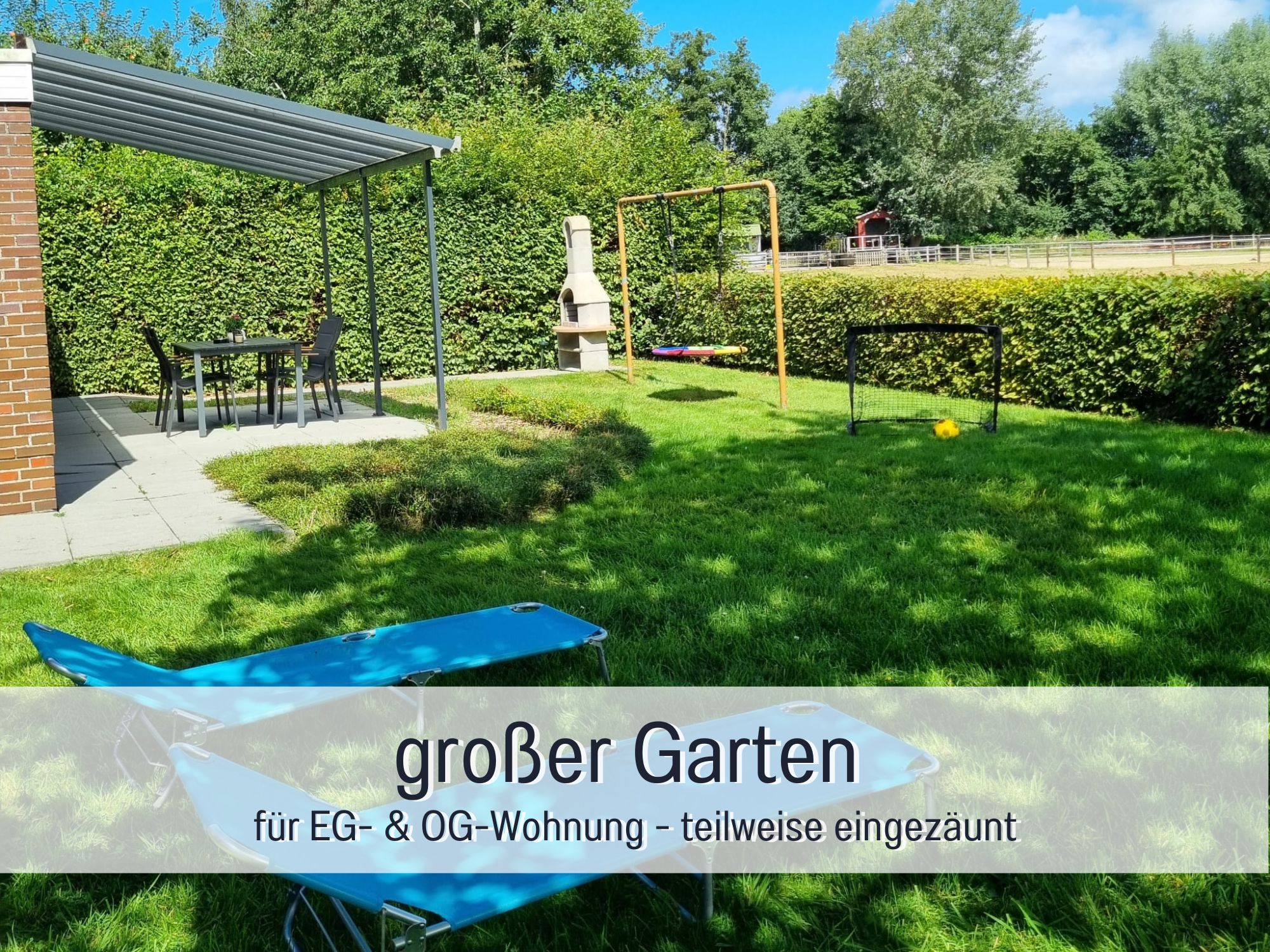 Zur Wohnung gehört eine eigene, komplett überdachte Terrasse im Garten